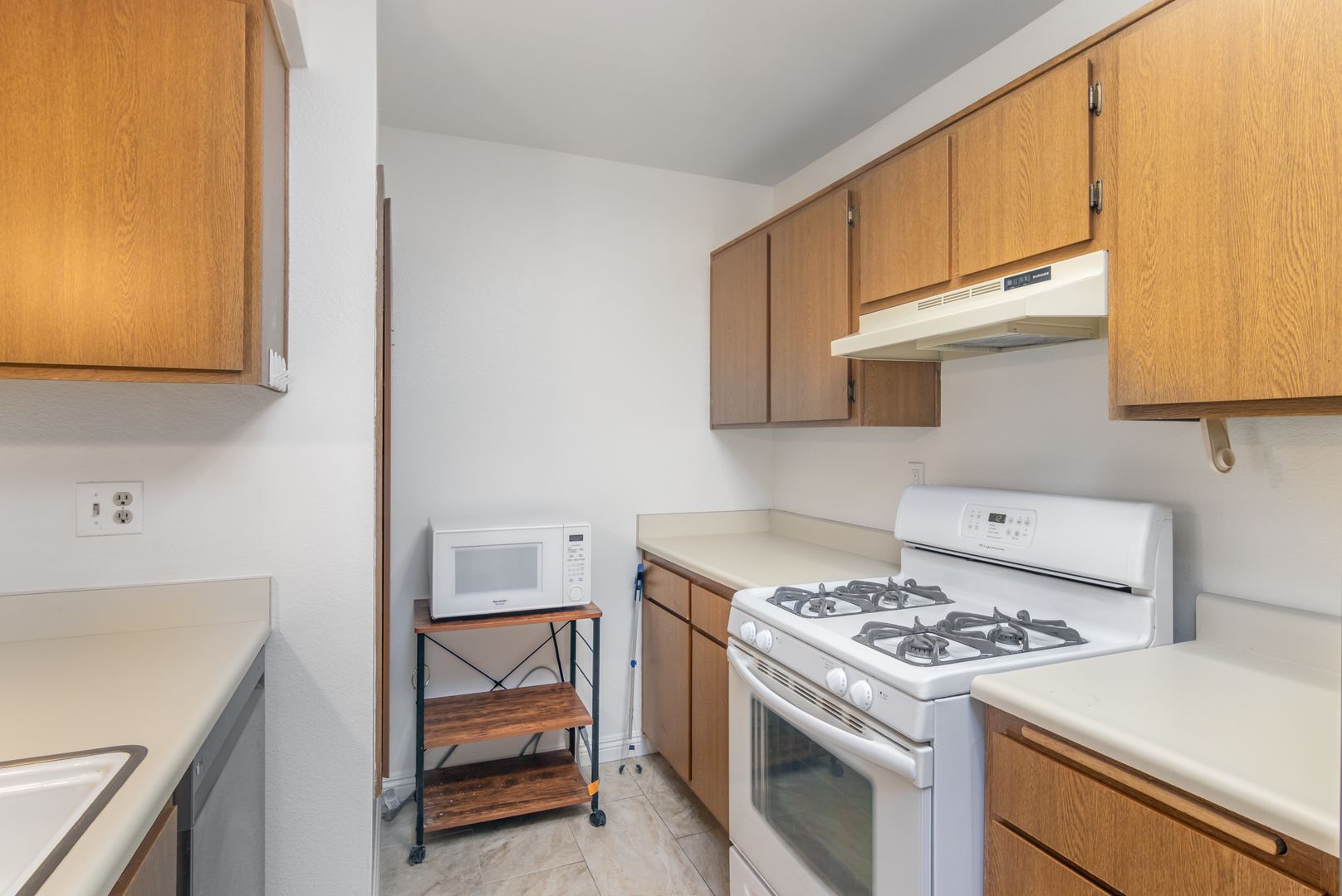 The thoughtfully designed layout features a Jack-and-Jill bathroom connecting both bedrooms, creating both privacy and functionality. Enjoy your morning coffee or unwind in the evening on your private balcony. The kitchen comes fully equipped with a range, refrigerator, microwave, and a stackable washer and dryer for added convenience.